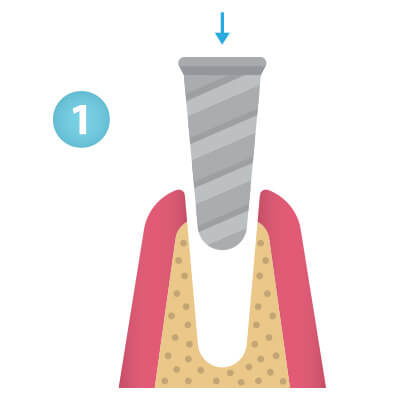 A dental implant is a small titanium post that is inserted into the jawbone in place of a missing tooth. Because of its biocompatible material, the titanium fuses with the jawbone to create a strong, solid replacement tooth root. This root allows us to place a restoration – typically a crown, bridge, or denture – on top to complete your smile.